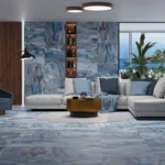 Los azulejos de color azul de gran formato de 60×60 cm o más, son una muy buena alternativa para los espacios abiertos, como salones y patios. En tonos azul marino o con patrones sutiles, estos azulejos crean un efecto de continuidad visual que expande la percepción del espacio y añade un toque de modernidad.